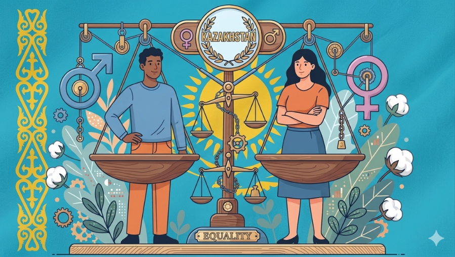 최근 몇 년간 카자흐스탄은 성평등 달성을 목표로 일련의 중요한 제도적 조치를 취했다. 대표적으로 의회와 지방의회(마슬리하트) 내에 여성 할당제가 도입되었고 그 결과 현재 의회에는 28명의 여성 의원이 활동 중이다. 또한 전체 공무원 중 여성 비율은 55.8%에 달하고 관리직은 39.1%, 그리고 사법 체계 내 여성 비율은 53%에 이르는 성과를 거두었다.