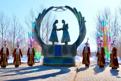 Под таким названием в Актобе 1 марта был открыт монумент, представляющий собой скульптурную композицию из двух женских фигур – казашки и кореянки. Казашка протягивает кореянке пиалу с кумысом как символ казахского гостеприимства, которое помогло выжить тысячам корейцев в тяжелое время депортации. За женщинами – стилизованные крылья белой птицы, держащей шанырак – символ дома для казахов. Общая высота композиции – 4,7 метра, ширина – 4,5 метра.