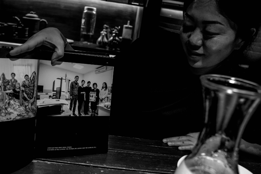 Прежде чем Елена переступила порог этого заведения, два года ранее на барной стойке появилась фотокнига Ким Динсока «고려인. Корейцы», на 85-й странице которой есть снимок, сделанный в 2019-м в редакции «Коре ильбо» – крайняя справа стоит Лена, работавшая тогда журналистом в нашей газете!