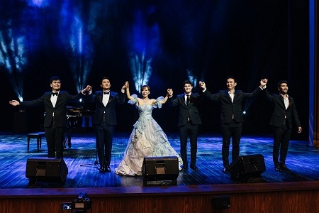 В заключение он выразил пожелания новых встреч с казахстанцами, радости и взаимообогащения от будущих культурных мероприятий. О состоявшемся концерте надо сказать в подытоживающем ключе – он был великолепен, одухотворен и блистательно ярок. Высокий мажорный тон задала хрустально изящная вокалистка, восточная дива со сценическим именем Исабель. Пела она чудесно, завораживающе, голос звонкий, умиротворяющий, околдовывающий – иного лада, тембра и быть не могло, ведь какие сладкие божественные слова в песне «В этот счастливый день». Конечно, незнание зрителями корейского языка нисколь не проявлялось иными чувствами, кроме страстного восхищения таким пленительным вокалом. В песне «Райская поляна» та же мажорная нота, утонченные ритмы, возвышенная лирика, клич победы и любви в земной житейской обители, где царят мир и лад. Третья песня была встречена бурными овациями. Как мощно и одухотворенно, какие сильные душевные песенные порывы вырывались из уст такой, как сказано выше хрустально хрупкой, нежной вокалистки Исабель. Она на казахском языке исполнила песню «Менiн елiм» - «Моя земля»!
