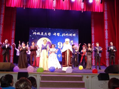 Вечером того же дня в Атырауском областном академическом казахском драматическом театра имени Махамбета при полном зале прошло театрализованное представление Государственного республиканского академического корейского театра «Жизнь – история единства». Перед началом выступления со сцены прозвучали слова приветствия от главы региона С. Шапкенова и председателя АКК Ю. Шина с пожеланиями хорошего времяпрепровождения.