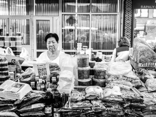 Наталью Цой, я застал за перепиской с клиентом, который сделал заказ с доставкой. Так удобнее, если хорошо знаешь продавца и тебе всё по вкусу. До Зелёного базара тётя Наташа стояла на рынке вблизи вокзала Алма-Ата – 1. Летом с мужем «делали» нонсади (농사지 – сельскохозяйственные угодья), занимались полем, а зимой – салаты. Началось всё в 90-е, когда экономика страны рассыпалась и прокормить семью помогли три овоща: морковка, редька и капуста. В те тяжёлые годы ассортимент корейского ряда, где, кроме т. Наташи, стояли ещё пять кореянок, состоял только из трёх салатов. Больше покупали, конечно, морковь-ча.
