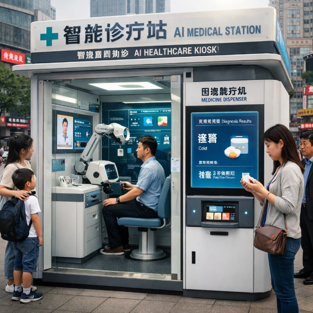 На улицах крупных китайских городов недавно появились медицинские киоски с искусственным интеллектом (ИИ), который самостоятельно проводит диагностику и выдает нужные лекарства. Всё действие происходит за 5-10 минут. Люди довольны, потому что не нужно заранее записываться на прием к врачу и ждать в очереди.