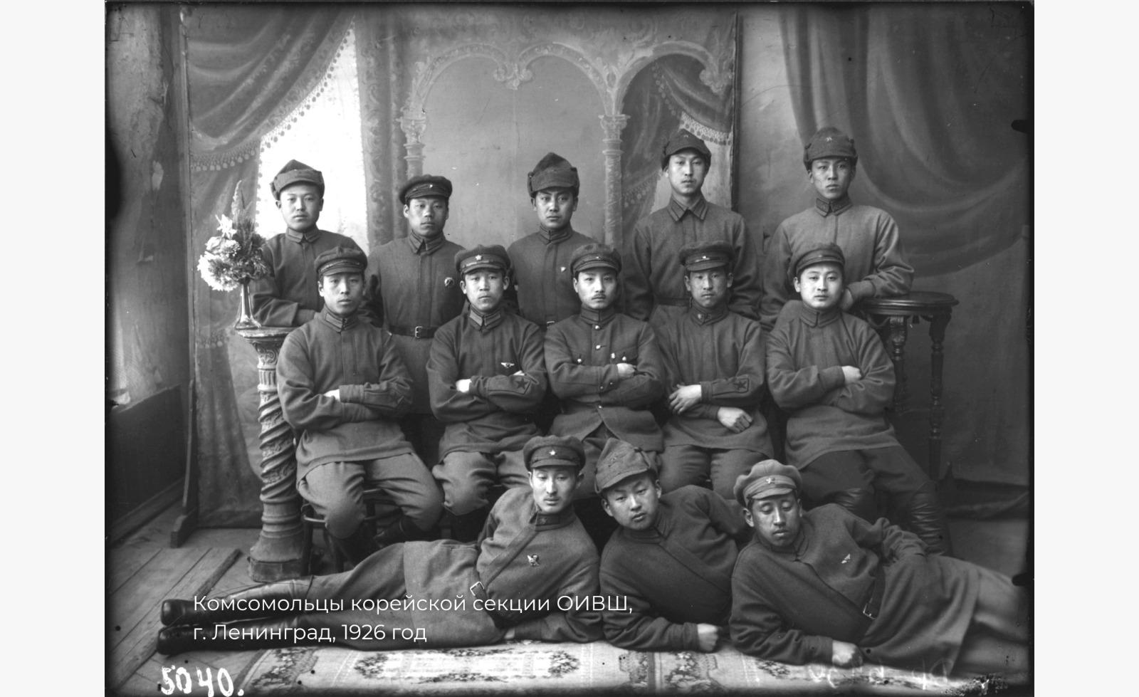 Когда на глаза попался приказ комиссара школы о необходимости сфотографироваться всем курсантам и подписать свои фото, я стала искать фотографии курсантов корейской секции в архивах кино- и фотодокументов. В архивах Санкт-Петербурга они нашлись и на них мои мама и родственники узнали своего деда Лю-Вондю (рис. 4,5).