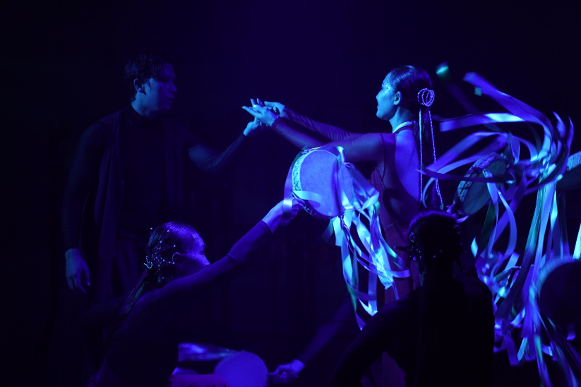 Главный герой спектакля в этой истории – человек, разрушающий баланс. С первых секунд, как на его лицо падает свет, мы видим в нем потерянного, нетерпеливого, возможно, плохого героя. Этот человек не в силах найти свое второе Я, он не способен на равноценное слияние со всем, что находится вокруг него. Кажется, что весь мир отстраняется и избегает его. Судьба пытается вести героя, протягивая полотно, она указывала ему путь, но он лишь путался в этих тканях и оставался в отчаянии.