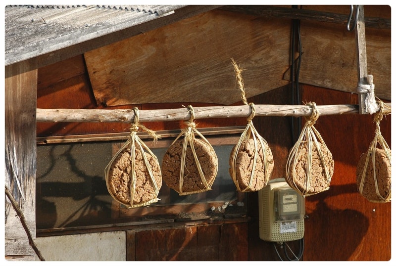 Эти лепешки бабушка на несколько дней укладывала на специальную металлическую решетку (сиртари) и оставляла сушиться на солнце под марлей. Время от времени она переворачивала лепешки, поглядывая, чтобы они равномерно подсохли и приобрели коричневый цвет. После этого бабушка складывала их в тканевый мешок и все это прятали на чердак, хорошо накрыв теплым одеялом на месяц. Помню, бабушка говорила, если лепешки горячие, значит, процесс брожения проходит хорошо, а если остыли и стали холодные, значит, все готово, пора их снимать с крыши. Когда лепешки полностью высыхали, бабушка их очищала, разламывала на небольшие кусочки и отдавала мадабаю (дяде), чтобы он дробил их в порошок на специальном станке. После этого полученную смесь она заливала солёной водой и всё хорошо перемешивала. Ну вот и все, соевая паста была почти готова к употреблению! Нам оставалось лишь дождаться того момента, когда, проснувшись однажды утром, бабушка уже заправит специями соевую смесь, пожарит ее, а мы будем наслаждаться прекрасным вкусом домашнего тяя, намазывать его на свежий огурец или есть корейский супчик пуктяй! Так готовился тяй у нас в семье, и по традиции бабушка обязательно раздавала всем родственникам по ведёрочку любимого лакомства!