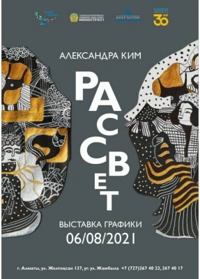 В Центральном выставочном зале Государственного музея искусств РК имени А. Кастеева открылась персональная выставка «Рассвет» Александры Ким. На выставке представлены работы в технике графики и акварели. Среди картин профессиональных художников, выставленных в галерее, работы непрофессиональной художницы смотрелись вполне утверждающе. Первая, небольшая выставка Александры Ким (здесь представлено всего 20 работ), по мнению занимающихся живописью профессиональных художников, наводит на мысли о том, что у дебютантки есть большой потенциал. Так что ее расцвета, как человека творческого, вдохновленного на труд такими великими художниками, как Винсент Ван Гог, Пабло Пикассо, Сергей Калмыков, ждать долго не придется.