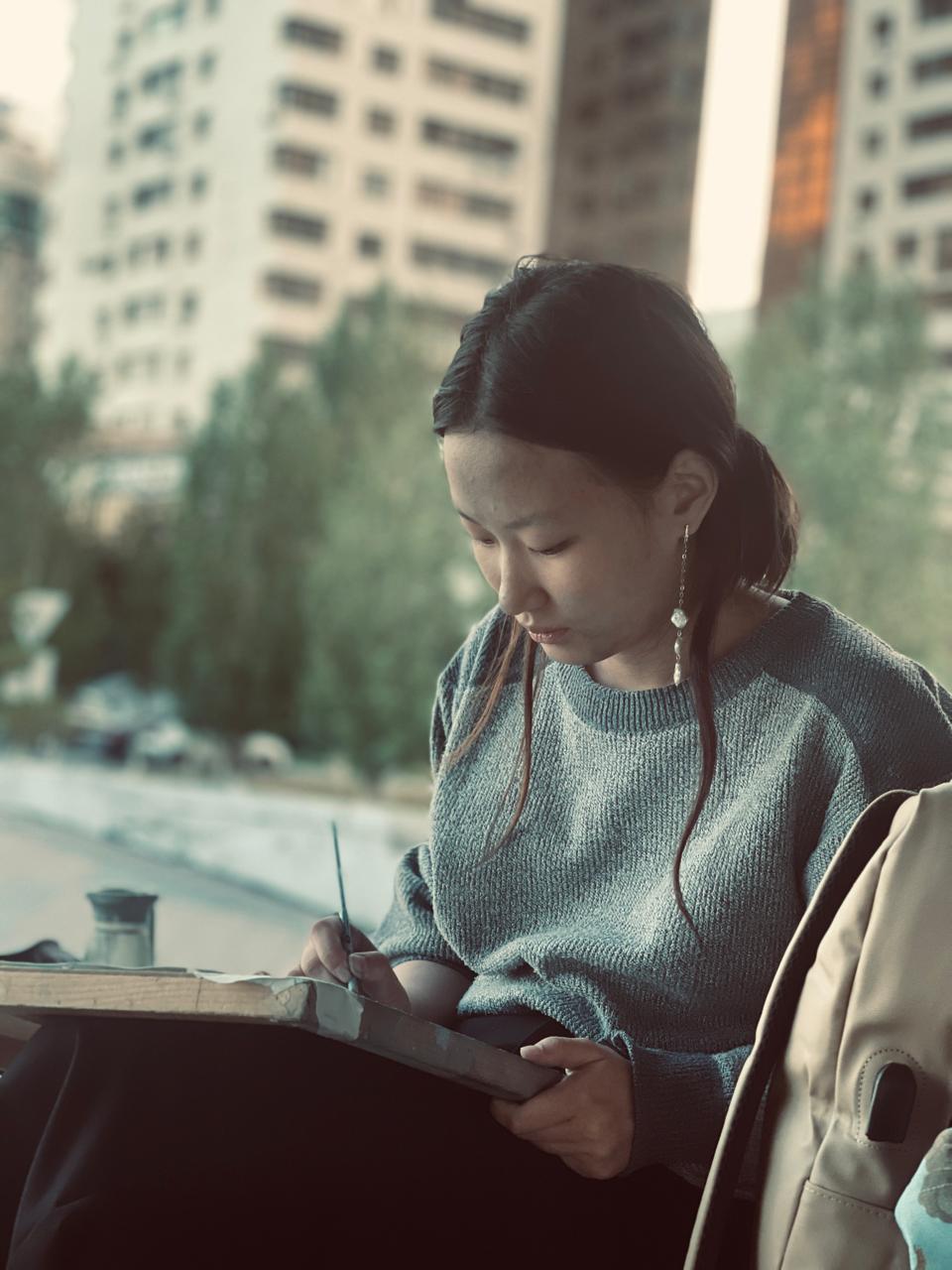 Кстати, в прошлом году она заняла первое место в конкурсе набросков в художественной школе, а во время Всемирных игр кочевников рисовала открытку, которая также прошла отбор, принимала участие в нескольких конкурсах от ЮНИСЕФ, в одном из них заняла призовое место.