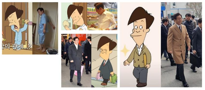На фото политик Ли Дже Мён копирует персонаж Ко Гидь Дона, которого озвучивал актер Ли Дже Мён.